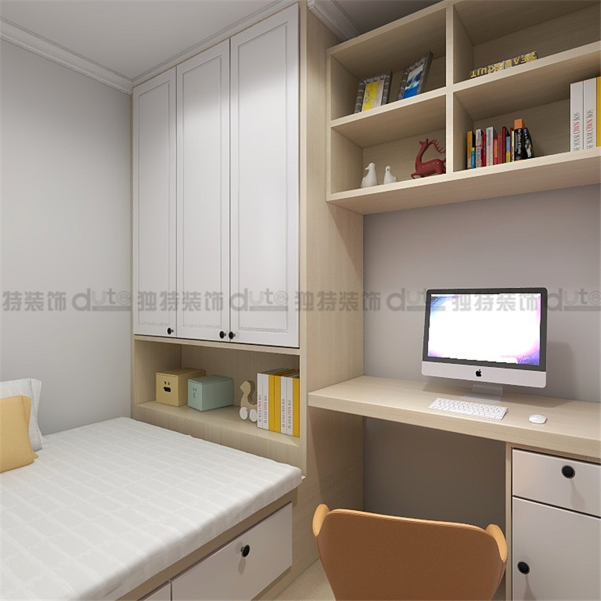 案例说明:本案采用简单时尚的设计理念,客户常住人口为三口之家,父母偶尔过来,结合原木色的家具套色,使整个空间有了原生态的感觉,用色大胆,电视墙采用蓝绿色做为主色调,不仅可以划分区域,还能突出亮点。