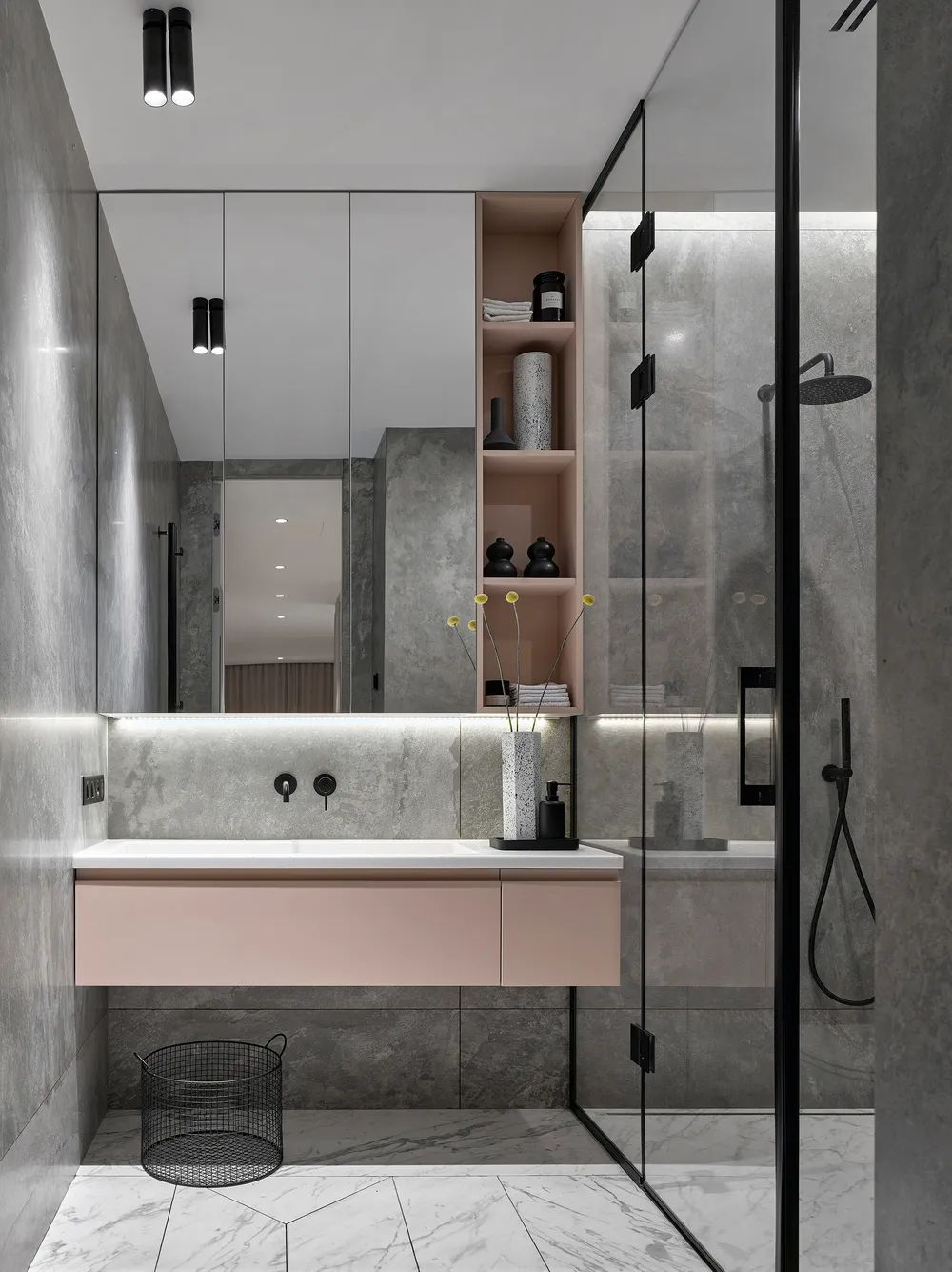 精约的空间规划更显容纳,以粉色贯穿一向,金属与金色作为装点,营建高雅的空间气质,领会日子带来的冷静夸姣。
