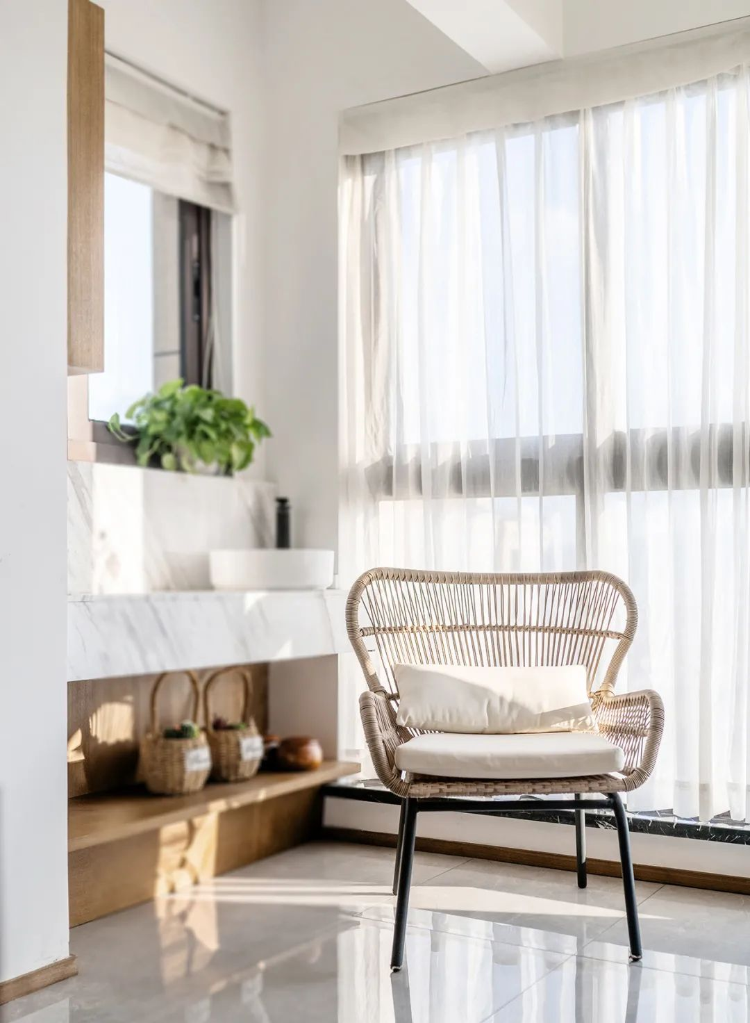在这套182+65平米的顶楼复式中,整体以简约大方的硬装基础,布置上新中式的简雅家具,并且以雅韵的墙面空间软装设计,打造出一种诗意而又韵味的居住空间感,室内部位简约舒适,楼顶的休闲区与泳池,也为主人打造出了一个从容舒适的居住体验。