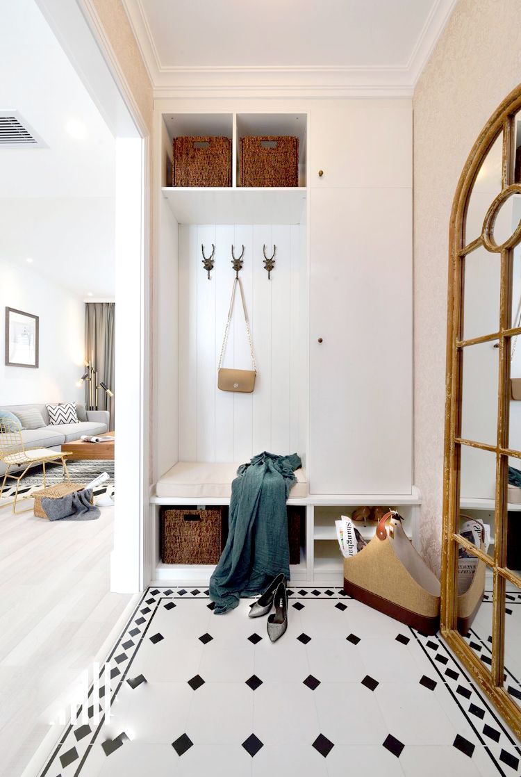 拖着疲倦不已的身躯回到家,打开门,脱掉精致却磨脚的高跟鞋,换上舒适自在的棉拖,切换到在家的放松模式。不知道大家平时家里玄关装修有没有太过注重,相信很多朋友家里可能都只是简单的做一个玄关隔断、摆放一个鞋柜吧?其实当代玄关是个很有仪式感的空间,小小的玄关作为家的脸面,承担着内外连接过渡的重任。对于特殊户型或小户型来说,玄关的装扮总是变得可有可无,虽然玄关位置的空间可能会因为户型或其它原因变窄,但这并不能是冷落玄关的借口呀!毕竟这个地方可是入门的第一印象!玄关虽然在住宅中面积不大,但使用频率较高,是进出住宅的必经之处。其实玄关在使用功能上,也可以用来作为简单地接待客人、接受换衣、换鞋、搁包的地方,也可设置放包及钥匙等小物品的平台。那么家里没有玄关的户型,要怎么补救?这个要分两种情况,如果进门空间比较紧凑,那就想方法放个鞋柜,实现收纳功能,如果进门空间充足,就可以设置一个隔断,实现玄关区的独立。如果家里常住的人数不多的话,更建议只装隔板架,其它的比如板凳或挂钩就不要布置了,直接留白,这样既可以保持空间的通透,整个空间的视觉也会有扩充的效果。玄关处很少有空间通透的,而且由于玄关的面积小,所以平时看起来会有些局促黑暗,所以可以通过适当的吊顶来增加玄关的光线或者改善它的空间比例。从嘈杂冰冷的外界回到家里,在玄关卸下重重的壳,抖掉身上的尘土,以一种最舒适最放松的状态进入室内,这才是家应该有的感觉。